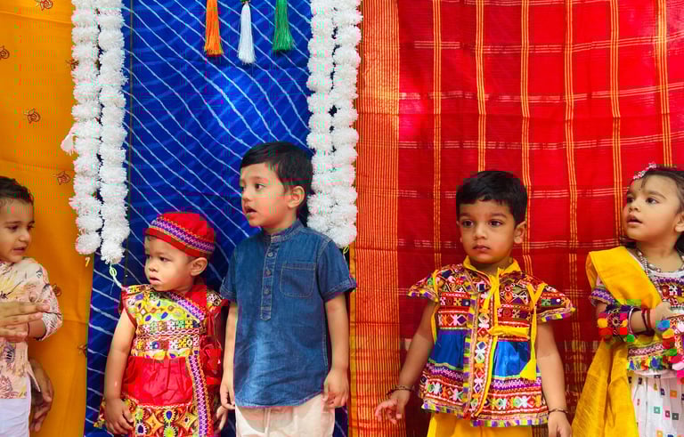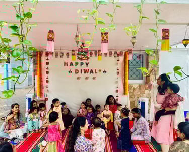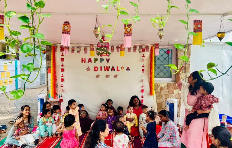 Children arrived in beautiful ethnic wear, enjoying a musical day of songs.They painted diyas and explored the magic of floating light on water.The atmosphere was joyful and bright.